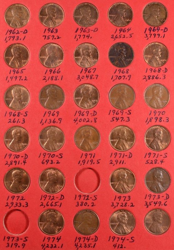 LINCOLN CENT COLLECTION, 1909-1974, ( 173 ) COINS IN TOTAL