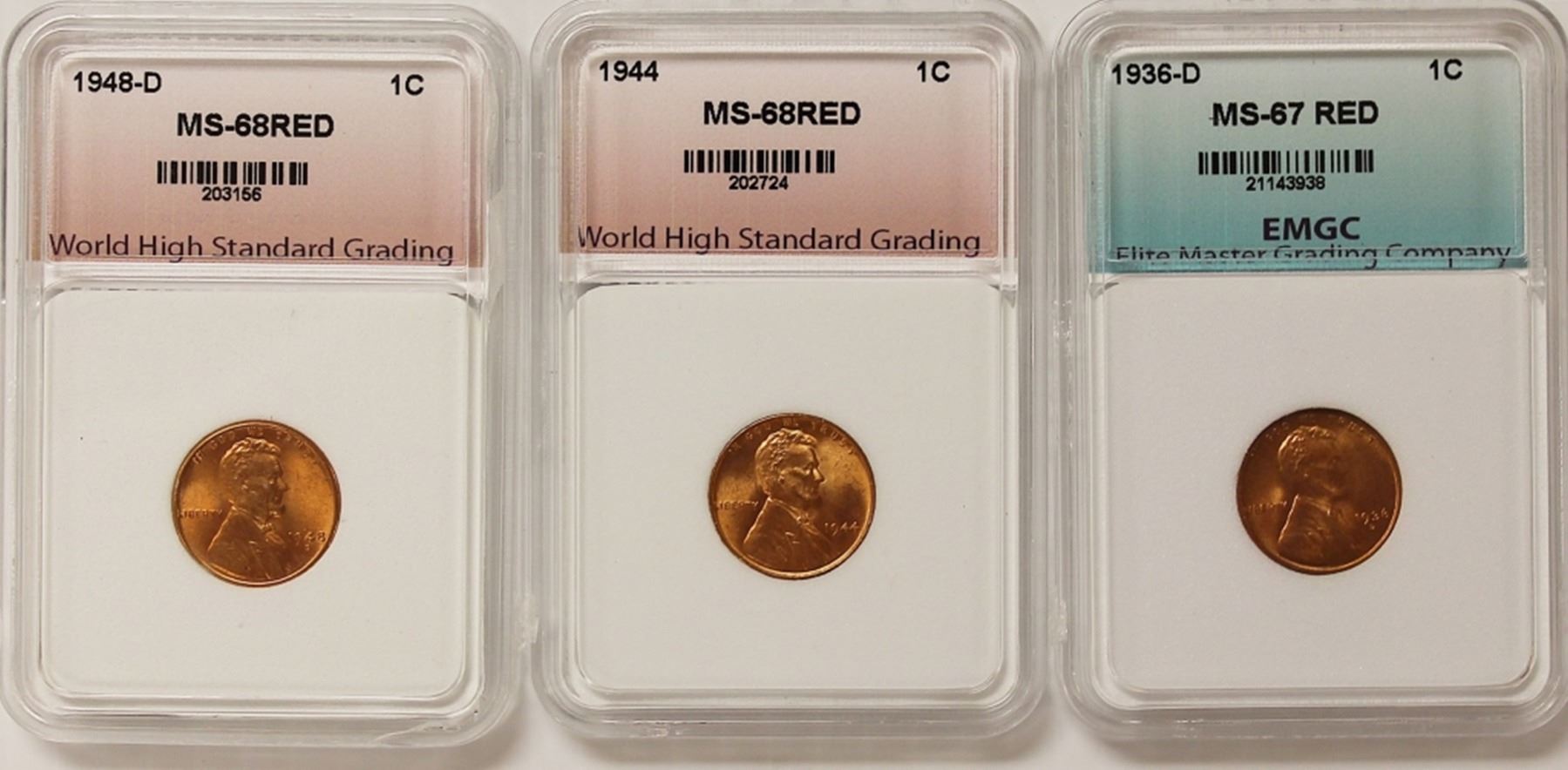 1948-D WHSG GRADED, 1936-D EMGC GRADED AND 1944 WHSG GRADED. ESTIMATE: $670-$725