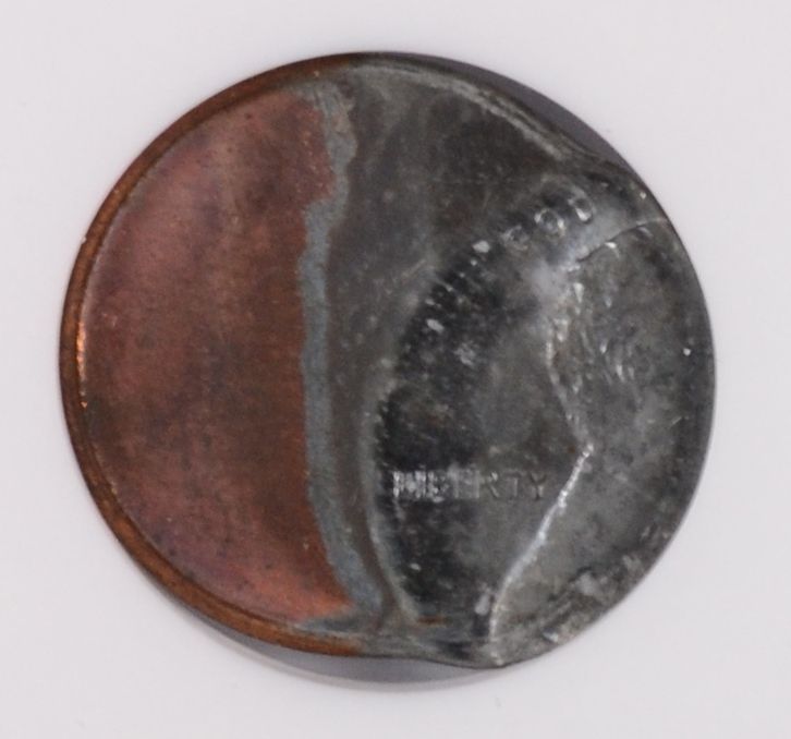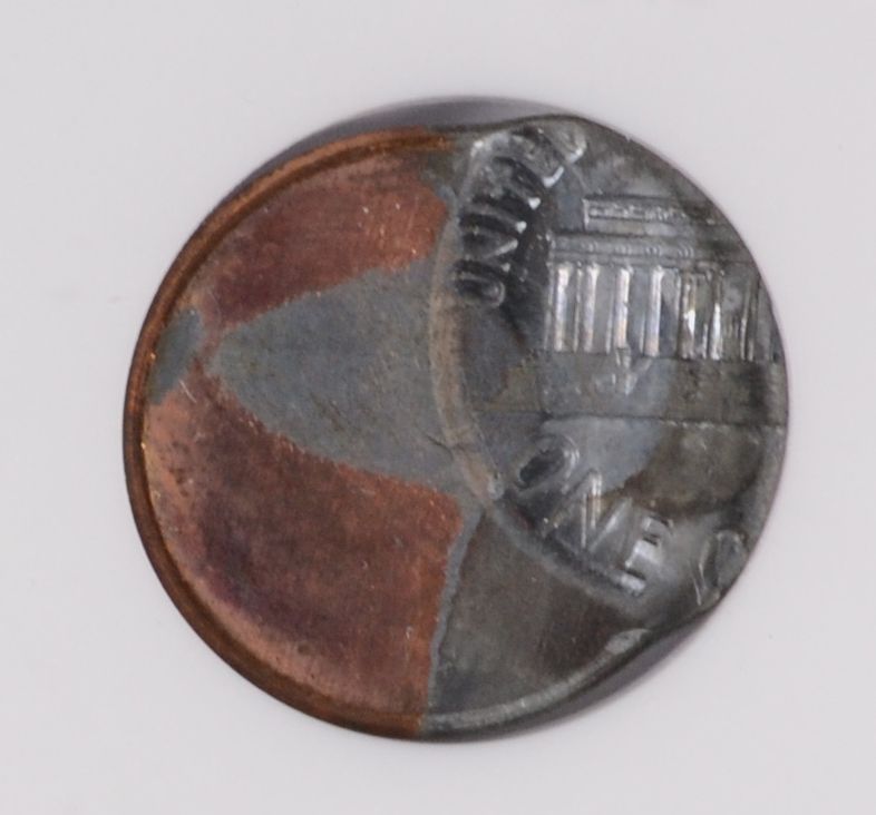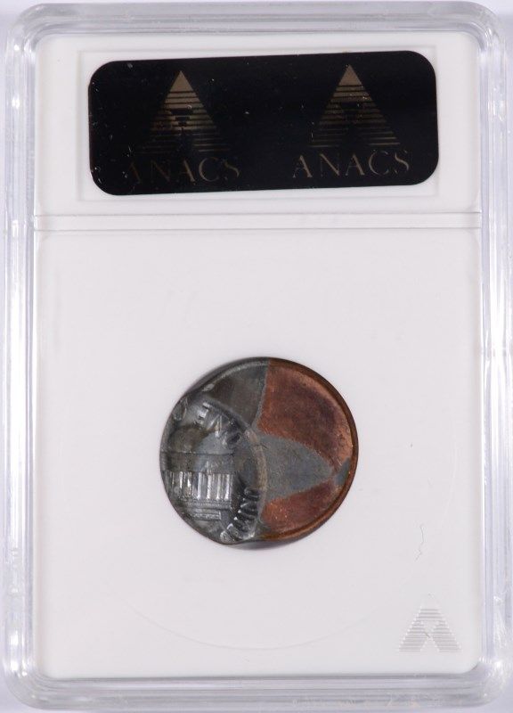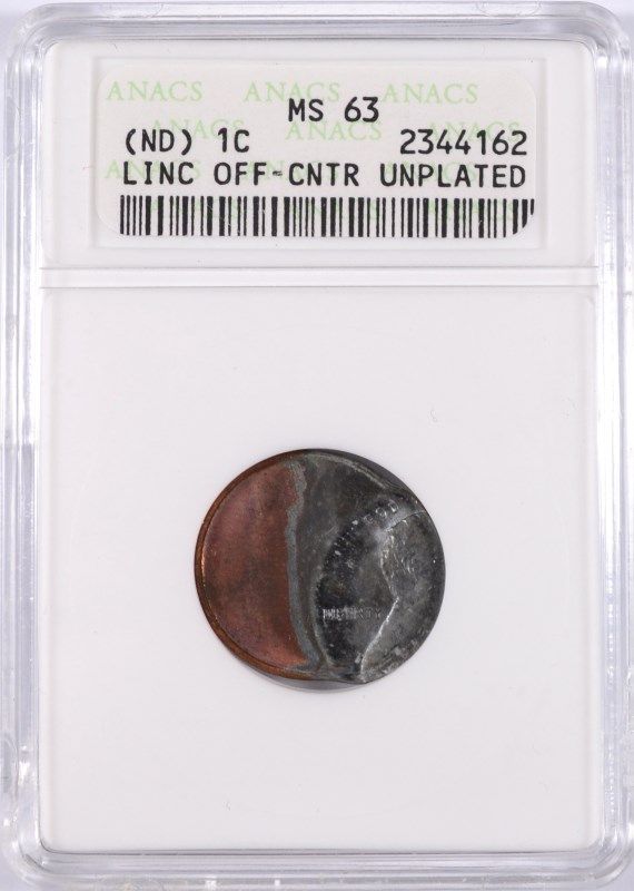 LINCOLN CENT MINT ERROR, OFF CENTER AND UNPLATED, NO DATE, ANACS MS-63 RARE!!!