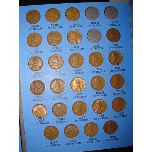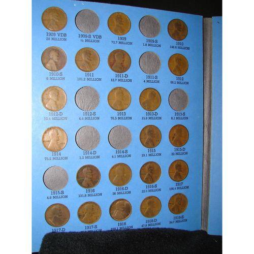 ALBUM OF LINCOLN HEAD CENTS. 1909 to 1940. Missing 1909-S VDB, 1909-S, 1911-S, 1912-S, 1913-S, 1914-D, 1914-S, 1915-S, 1924-D, 1926-S, 1931-D, 1931-S, & 1933-D.