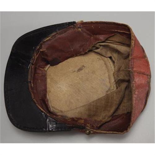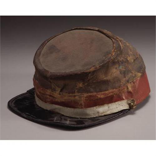 <B>LINCOLN POLITICAL CLUB “WIDE AWAKES" KEPI CIRCA 1860.</B></I> The Wide Awakes organization was a political club loosely associated with the Know Nothing Movement in the 1850s. At that time, dozens of such clubs operated across the country using such names as Rocky Mountain Club, Wide Awakes,<I> </B></I>Freedom Club, and Bear Club. The Wide Awakes supported the new Republican Party in the 1860 presidential campaign. In Chicago, on October 3, 1860, 10,000 Wide Awakes<I> </B></I>marched in a three-mile procession in support of the Republicans.<BR><BR>Shown here is a black glazed Wide Awake<I> </B></I>kepi from that period. This rare, prime example, has red paint on oilcloth. Brass buttons hold a white painted hat band. <BR><B><BR>Provenance: </B></I>Al. Emmett Fostell Collection<B> <BR><BR>Condition:</B></I> Very fine example<BR><BR><b>Shipping:</b> Miscellaneous Collectibles, Smal (<a target="_blank" href="http://www.heritageauctions.com/common/shipping.php">view shipping information</a>)