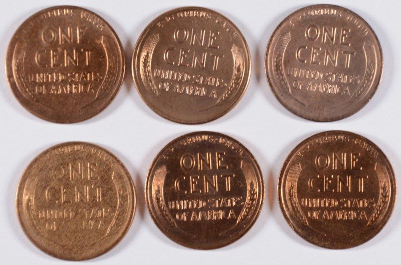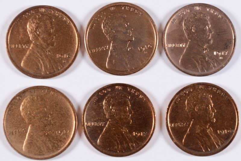 LINCOLNS: 1916 XF, 1916-D VF, 1916-S XF (MARK REV), 1917 AU, 1917-D AU, 1917-S