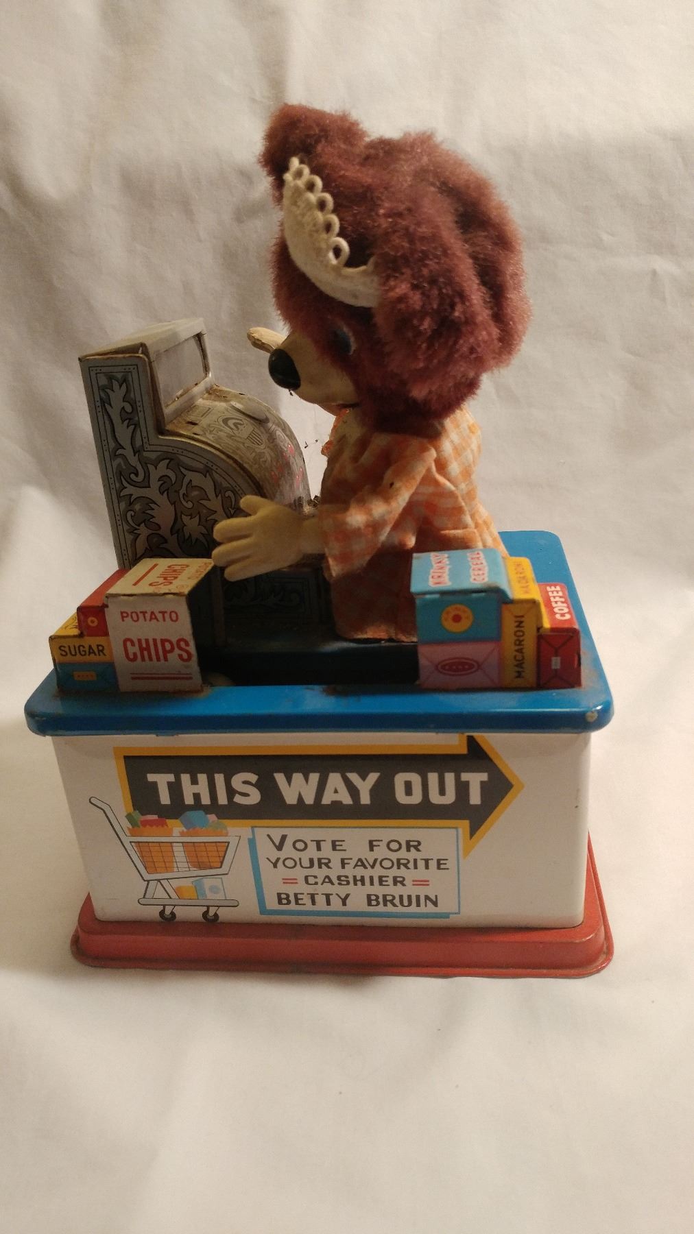 LINEMAR TOYS 1950'S BETTY BRUIN THE CASHIER BEAR. BATTERY OPERATED. F - G CONDITION