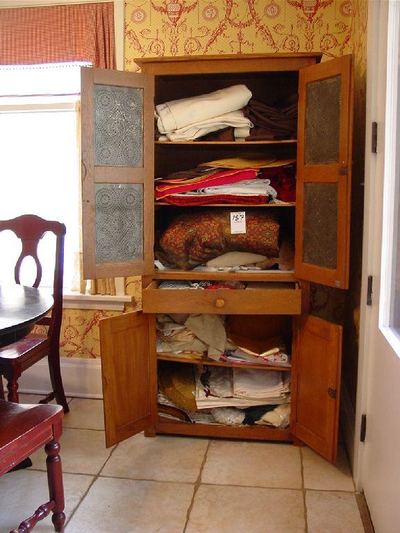 LINENS, TABLE CLOTHS, APKINS IN PIE SAFE