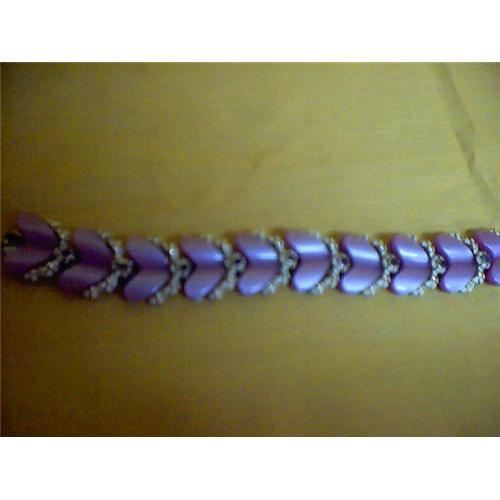 VERY BEAUTIFUL LAVENDER COLOR AND WHITE ENAMELE FLOWERS AND PURPULE RHIENSTONES LINKED BRACELET SIGNED BSK FROM 1950's.THERE IS COUPLE OF SMALL SCRATCHES.THIRD PICTURE IS THE BACK OF THE BRACELET.GOOD LUCK