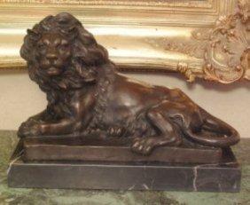 AFRICAN LION BY DAVIS-VERY GOOD DETAIL-MUSEUM BROWN PATINA, APPROX. 10HX12WX7D