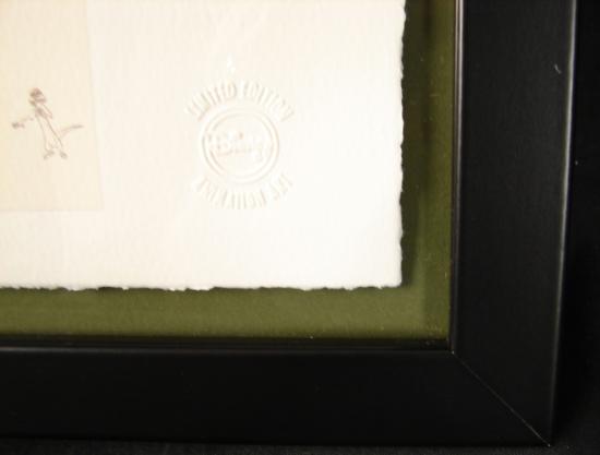 "Published by The Animated Animations Company, this limited edition was produced in the year 2004. It is comprised of a general edition of no more than 500 paper prints, numbered 1/500 to 500/500, 50 publisher's proof, numbered PP 1/50 to PP 50/50, and 6 hors de commerce, numbered HC 1/6 to HC 6/6, for a total maximum of 556 paper prints."