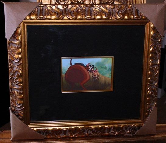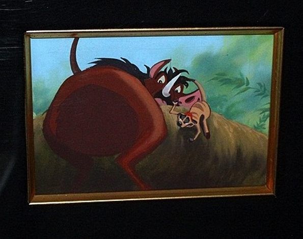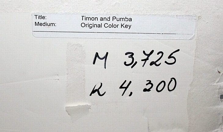 "LION KING" ORIGINAL COLOR KEY FROM DISNEY TOON STUDIOS 1994- "TIMON & PUMBA" - HAND DRAWN AND PAINTED BY FAMED DISNEY BACKGROUND ARTIST, WRITER & DESIGNER SERGE MICHAELS WHO PASSED AWAY IN 2009 - PROFESSIONALLY FRAMED AND MATTED - FRAMED 18" X 19" - IMAGE 4" X 6.5" - AUTHENTICATED ON BACK