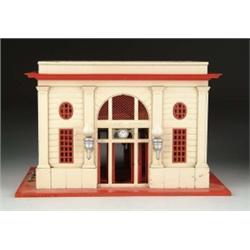 LIONEL #115 STATION. Cream and red late colors with train control, station has roof canopy, minor nicks and scratches and some tiny rust spots. CONDITION: Overall very good. EC 1-4360 (275-450)