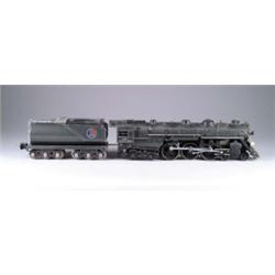 LIONEL #763E IN GUN-METAL GRAY WITH MATCHING OIL TENDER. CONDITION: A few very minor chips on boiler top, one chip on cab where the number 763E should be, tender has few minute chips and in very nice condition, casting at end is near excellent; overall appearance is very good. EC 1-3033 (1,800-2,600)