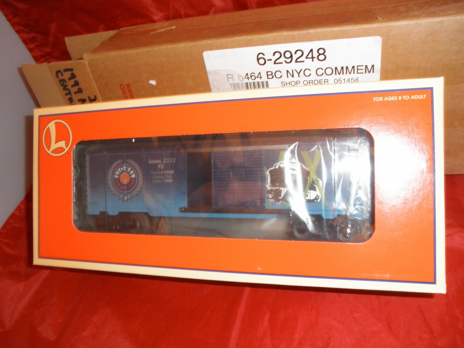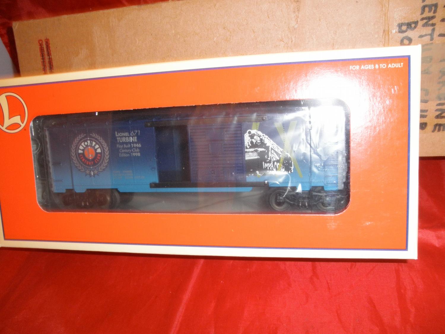 Three (3) Lionel Century Club O gauge box cars in the original boxes. #29227 GG-1, #29248 NYC F-3, #29228 Turbine.