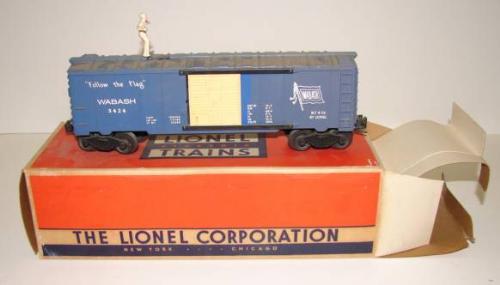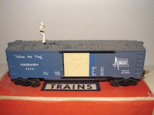 LIONEL NO. 3424 OPERATING BRAKEMAN CAR. Box is in very good condition. Car is marked "Follow the Flag/Wabash/3424".