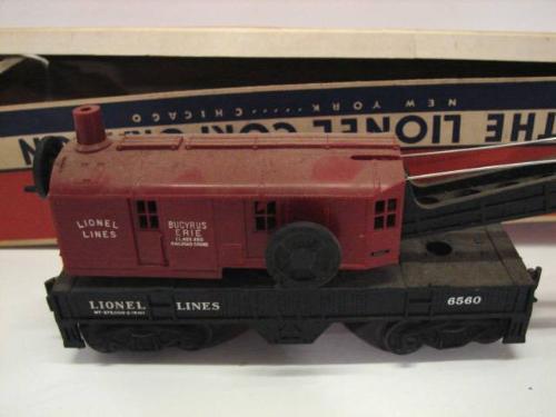 LIONEL NO. 6560 OPERATING WORK CRANE WITH BOX. Box is in very good condition. Car is marked "Lionel Lines/6560".