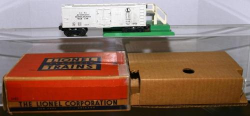 LIONEL OPERATING MILK CAR. CANS INSIDE CAR. INCLUDES PLATFORM.