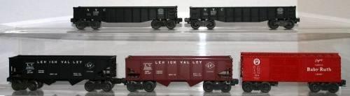 LIONEL POSTWAR NYC GONDOLAS (2), LV HOPPER, LV HOPPER, PRR BABY RUTH BOX CAR.