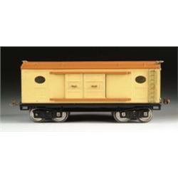 LIONEL STANDARD GAUGE AUTOMOBILE CAR #214. A very pretty car, body is yellow with an orange roof and brass trim on a black frame. CONDITION: One journal box missing and a few minor chips and small amount of spidering to paint on roof; otherwise overall condition is very good plus. EC 1-4377-1216 (250-450)