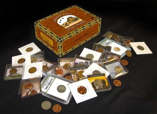 LIONS DEN OLD STYLE BOX WITH OLD COIN COLLECTION