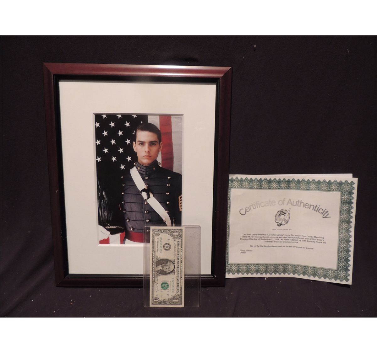 This is the Screen Used, and Matched nicely framed photo of a young Tom Cruise from the film LIONS FOR LAMBS. A photo of him as a younger man was superimposed onto the body of a stand in double to achieve the effect. Makes a great display!