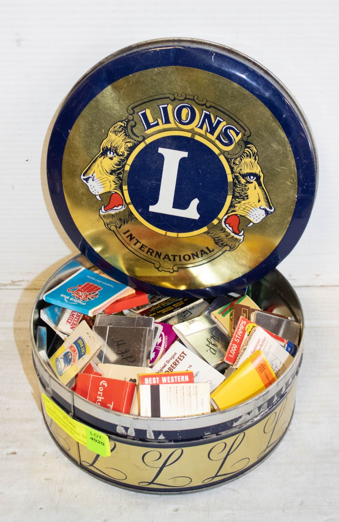 LIONS VINTAGE METAL TIN WITH OLD MATCHBOOKS