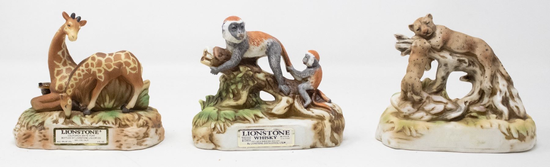 DECANTERS (X3): MONKEYS, GIRAFFES, LEOPARDS