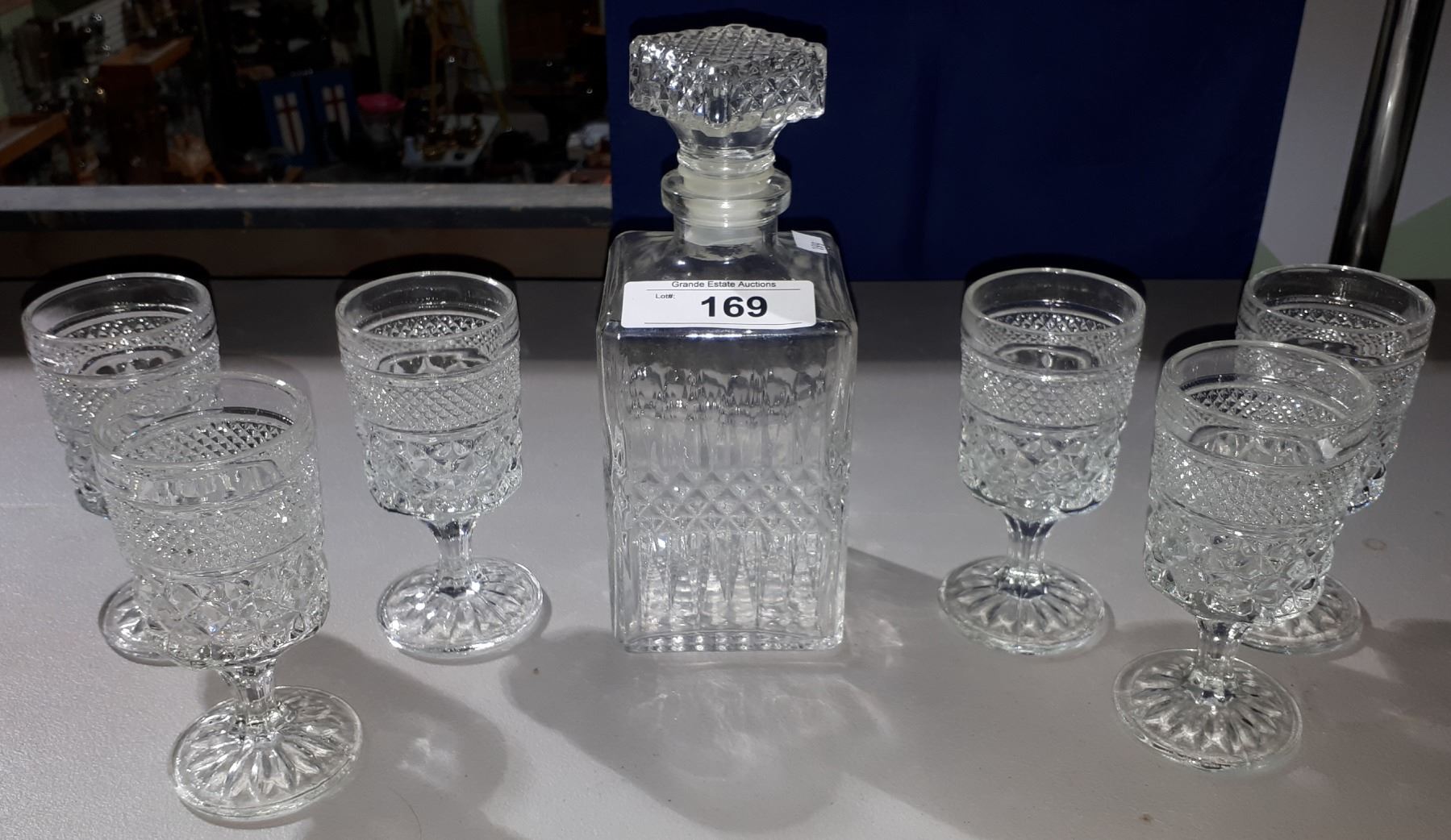 LIQUOR DECANTER AND 6 GLASSES