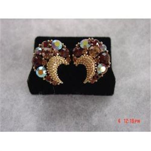 Here is a wonderful pair of signed LISNER brown topaz aurora borealis rhinestone clipped earrings. These are in excellent condition. I'm sure there is a matching bracelet brooch and necklace out there somewhere
