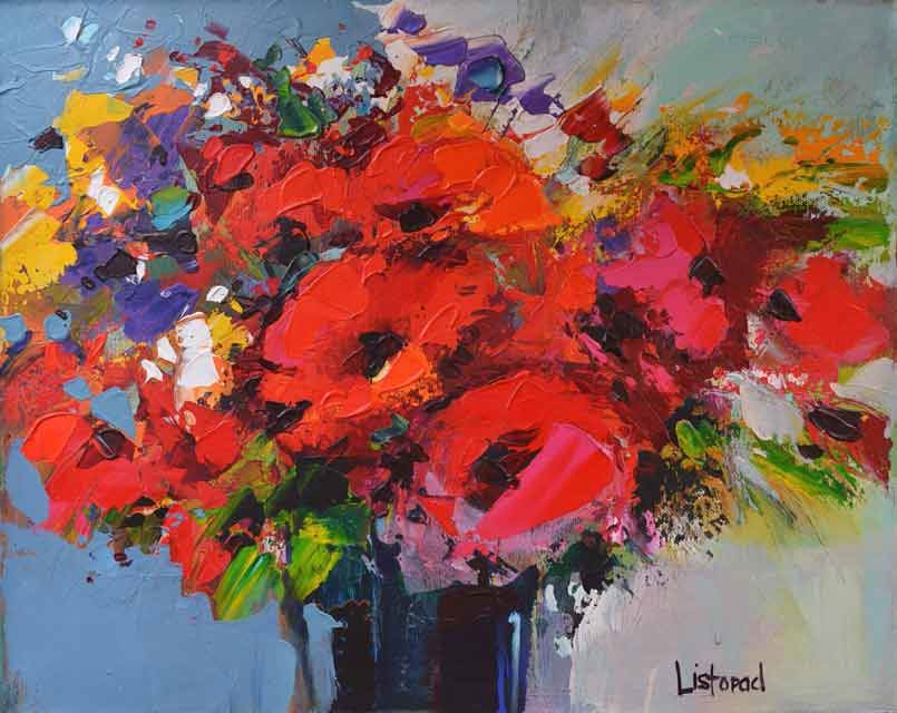 LISTOPAD **IN THE VASE** ORIGINAL ACRYLIC. Artist: Natalya Listopad - Title: In the Vase - Medium: Original Acrylic on Canvas - Signature: This one-of-a-kind work is hand-signed by the artist at the bottom of the image - Image Size: Approximately 15 ¾ inches x 19 ¾ inches - Framed: Unstretched and Unframed - Details: This work comes with a Certificate of Authenticity - Biography: Natalya Listopad was born in a small village near Kharkov Ukraine in 1957. Having studied at the Academy of Art in Kharkov, Listopad later joined numerous show groups all over Ukraine. In 2001 she immigrated to Israel with her daughter and her husband, a talented artist in his own right. Natalya's works are exhibited and collected throughout Ukraine, Israel and USA. - Warranty: Item GUARANTEED to be as described