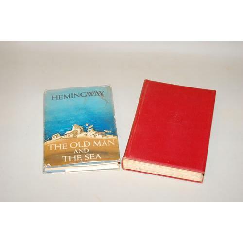 LITERATURE. A Group of 2 Volumes as Listed. 8vo - over 7¾" - 9¾" tall. Hard Cover. Good Condition. NOT EX-LIBRARY. **Bright Skin by Julia Peterkin (1923) AUTOGRAPHED EDITION, Limited #61 of 250, SIGNED BY THE AUTHOR. 348pp in original maroon cloth with bevelled edges, top edges gilt. Binding & hinges tight. Small ownership label inside cover. ***The Old Man and the Sea by Ernerst Hemingway (1952) NY: Charles Scribner's Sons. With a dust jacket, showing stains and edge chips/tears, in a mylar cover. Although this is a book club edition, there is an anomaly of several pages being blank. Letter (A) on copyright page, binding & hinges tight. Covers soiled.