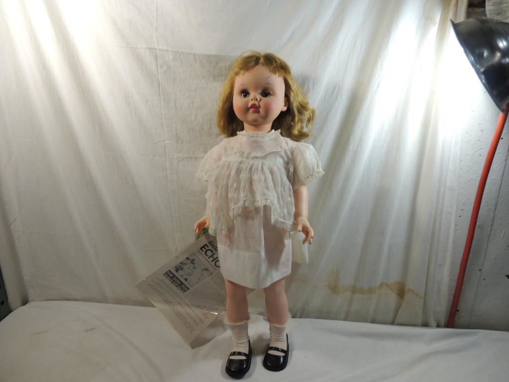 LITTLE MISS ECHO DOLL, VINTAGE DOLL, PLASTIC DOLL, BLONDE HAIR DOLL, VINTAGE DRESS, AS SHOWN SEE PHOTO FOR MORE DETAILS.