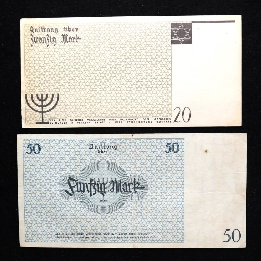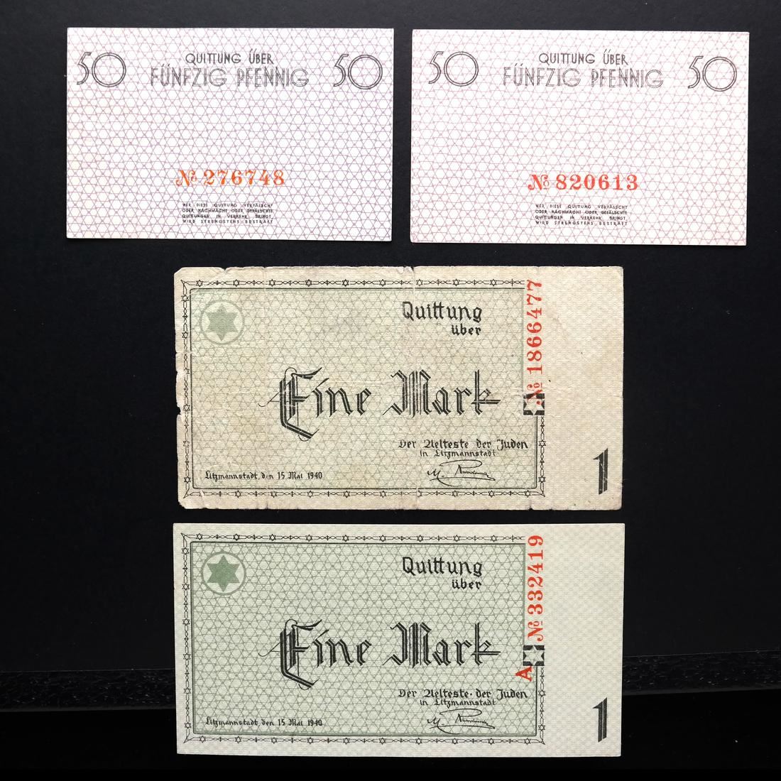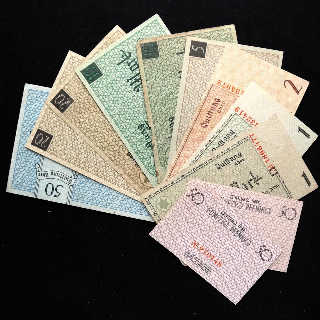 Includes 50pf orange serial #276748 About Uncirculated, 50pf red serial #820613 Uncirculated, 1M type I serial #1866477 Fine (creases and tears), 1M type II serial #A 332419 Uncirculated, 2M serial #134972 Extremely Fine, 5M serial #844169 Uncirculated, 10M orange serial #013949 Fine (creases and tears), 10M red serial #408026 About Uncirculated, 20M orange serial #070114 Fine-Very Fine (creases and small edge tears), 20M type I red serial #239126 Uncirculated, 20M type II red serial #278274 Extremely Fine+, and 50M serial #049332 Very Fine.