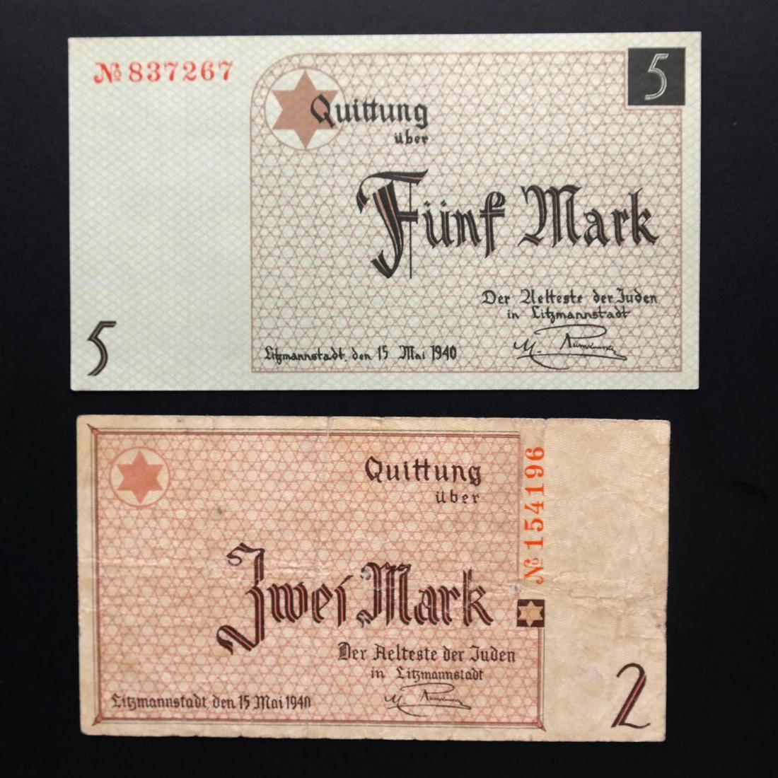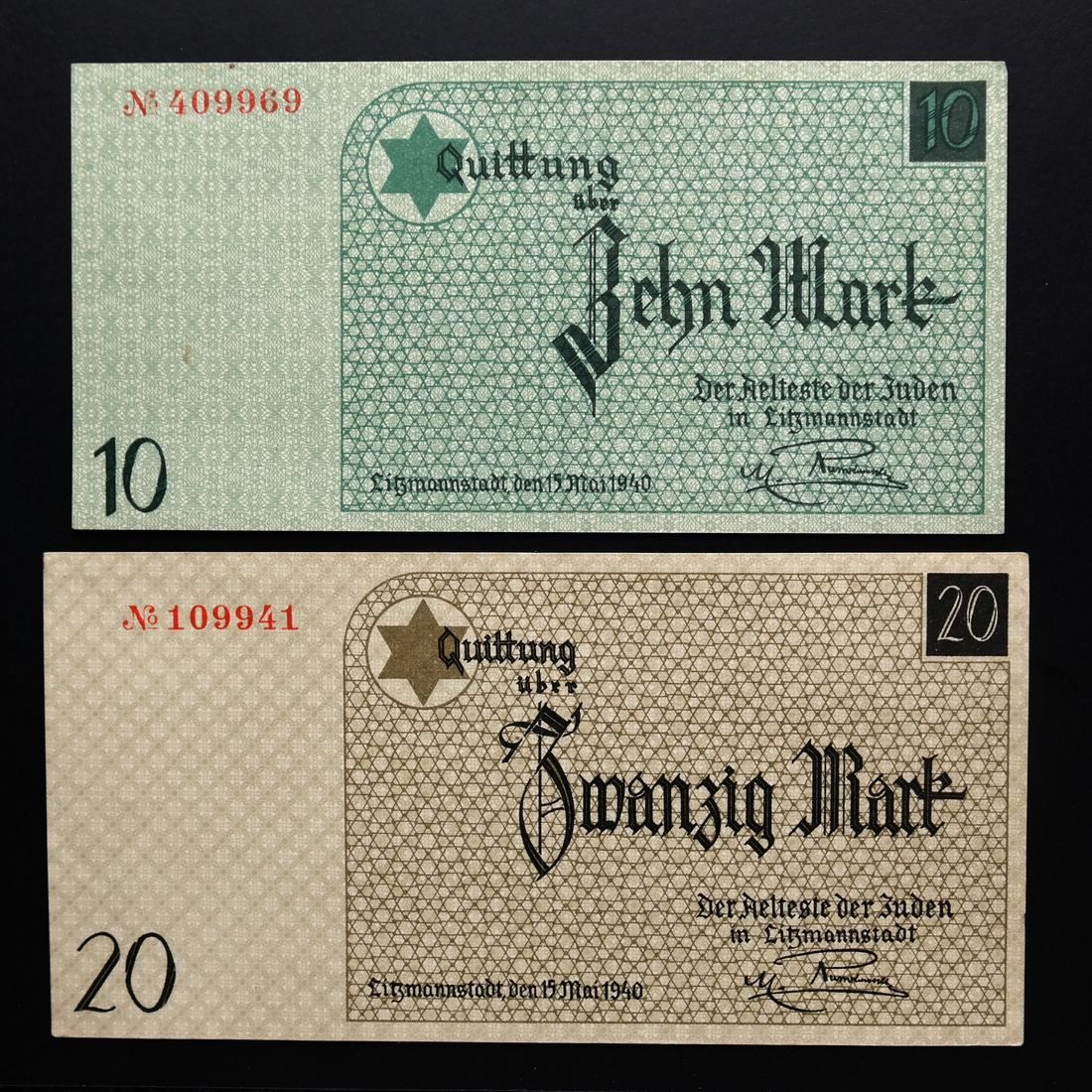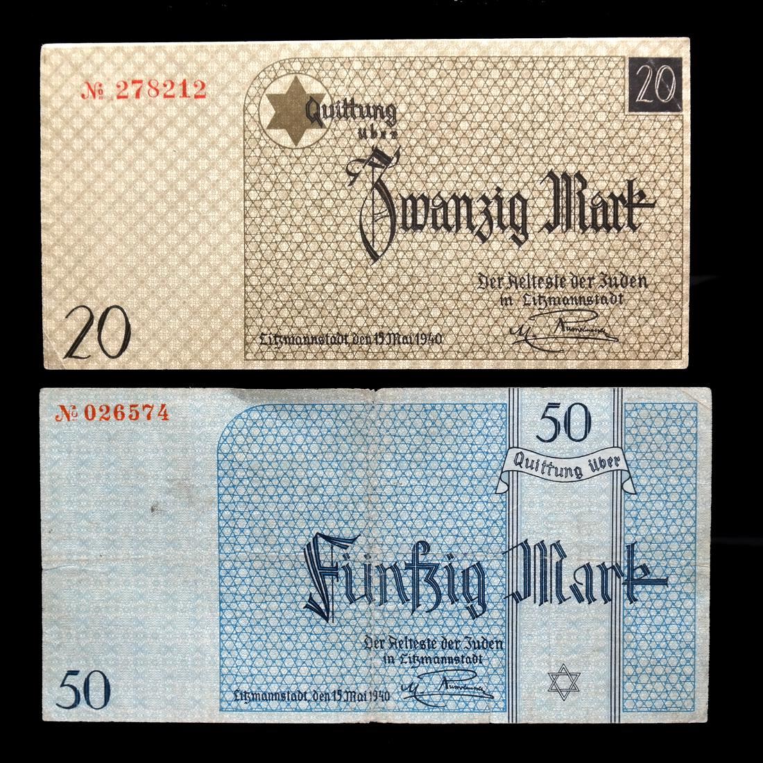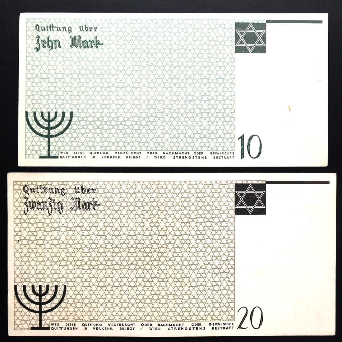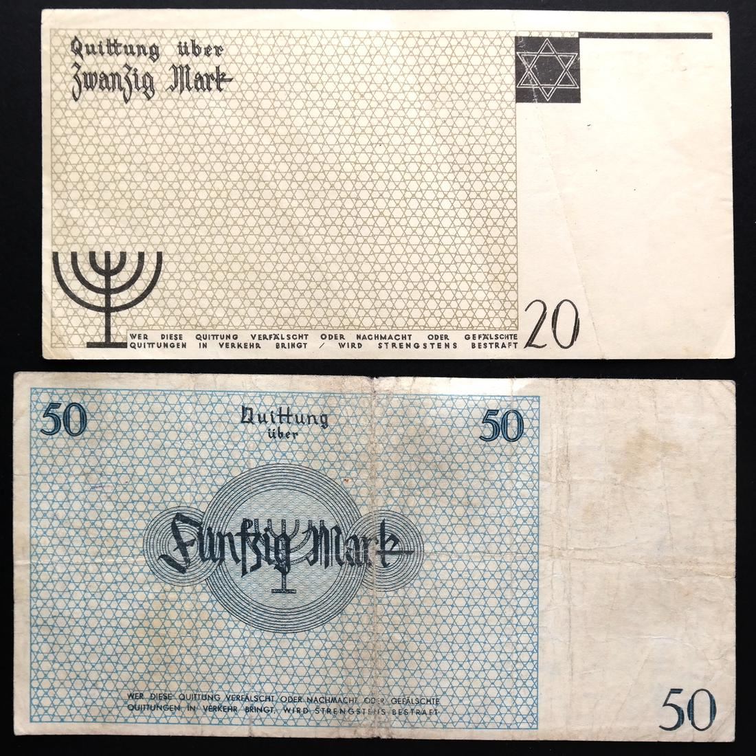 Includes 50pf orange serial #012055 XF to About Uncirculated, 50pf red serial #862103 Uncirculated, 1M type II serial #A 365668 About Uncirculated, 2M serial #154196 Fine+ (creases and pinhole), 5M serial #837267 Uncirculated, 10M red serial #409969 About Uncirculated, 20M type I red serial #109941 About Uncirculated, 20M type II red serial #278212 Extremely Fine, and 50M serial #026574 Very Fine (creases and one small edge tear).