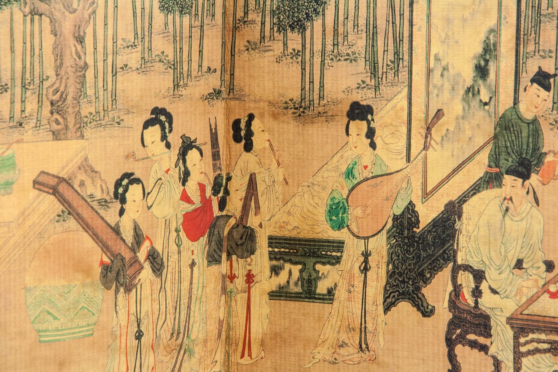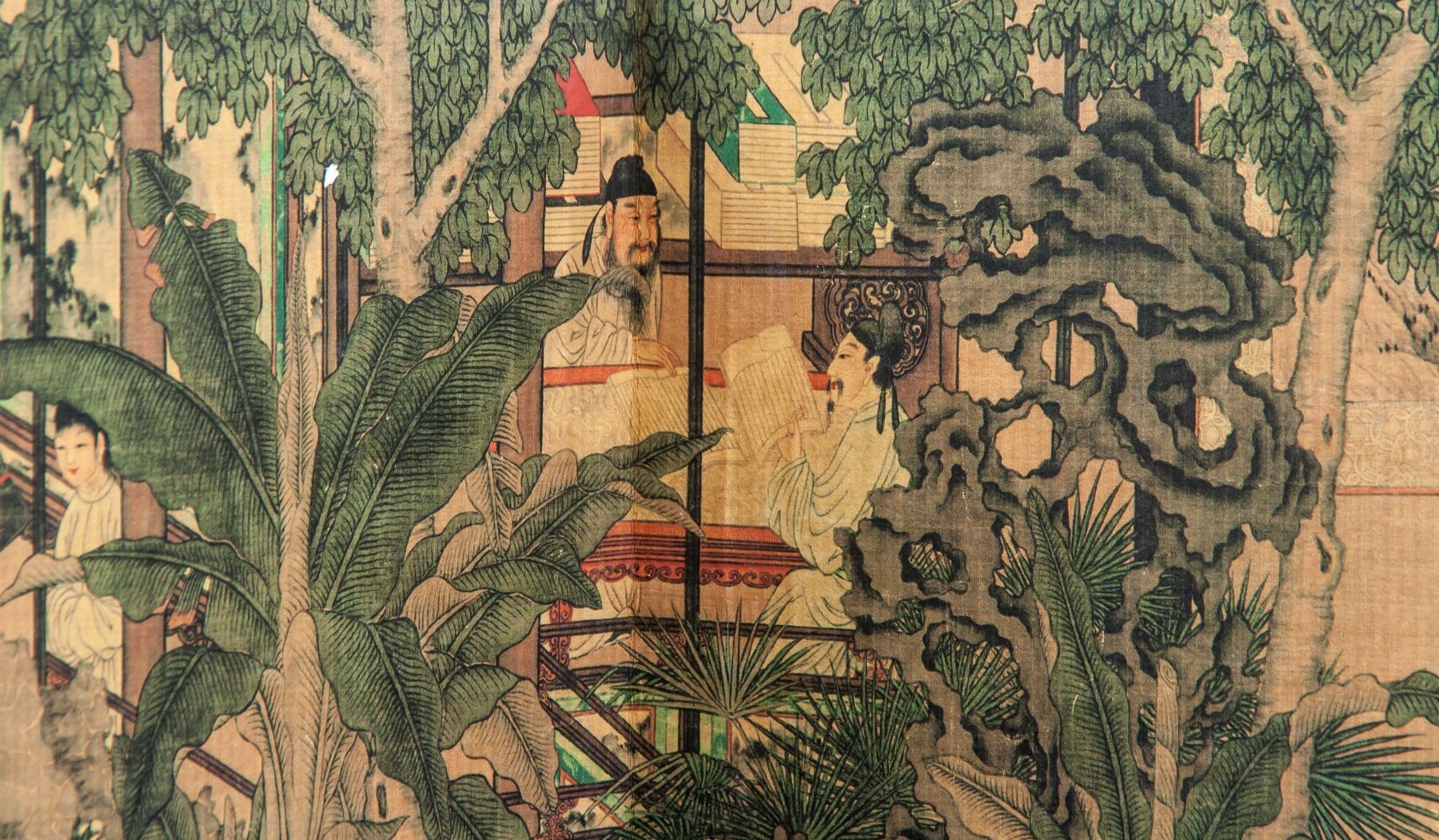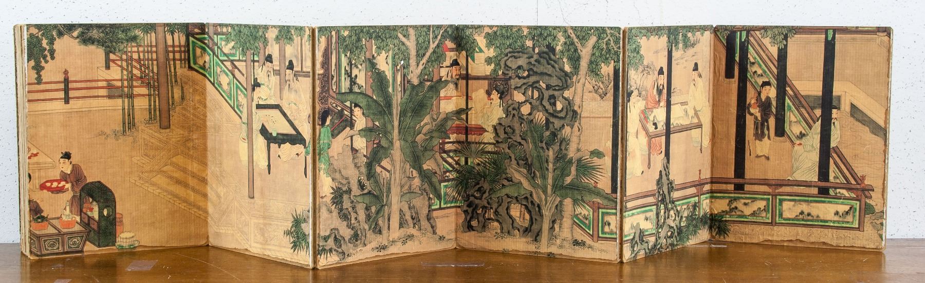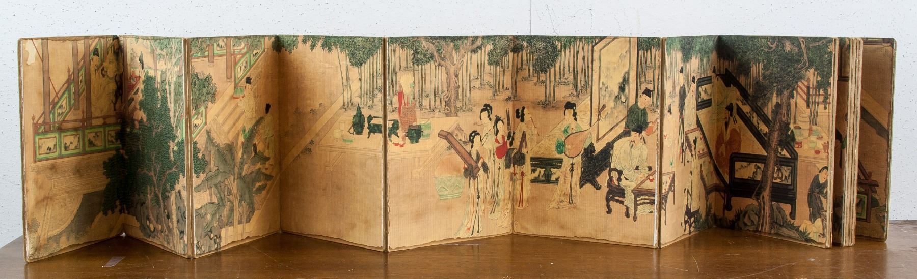 Print on paper booklet, featuring 18 Scholars, originally painted by Liu Songnian (Chinese, ?-1225), 19 x 15 cm, Liu was a Chinese figure and landscape painter during the early Southern Song Dynasty (1127–1279). He was active from about 1190-1230 and is considered one of the Four Masters of the Southern Song dynasty
