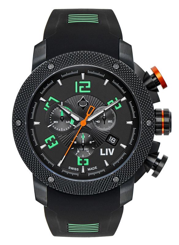 Model: 1210.45.80.SRB800 - CASE = [Material:PVD Black Steel], [Case Diameter:45], [Case Thickness:14.25mm], [Bezel:PVD Black Steel], [Case Back:Solid Screwed Down (with screws)], [Water Resistant:300 Meters - 1000 Feet], [Crystal:Scratch Resistant Sapphire], DIAL = [Color:Black], MOVEMENT = [Type:Chronograph Battery Powered Quartz], [Crown:Screwed Down], BAND = [Clasp:Pin & Buckle], [Type:Black Silicone Rubber (8 in Length (20.3 cm)], (In Stock - Ready to ship.)