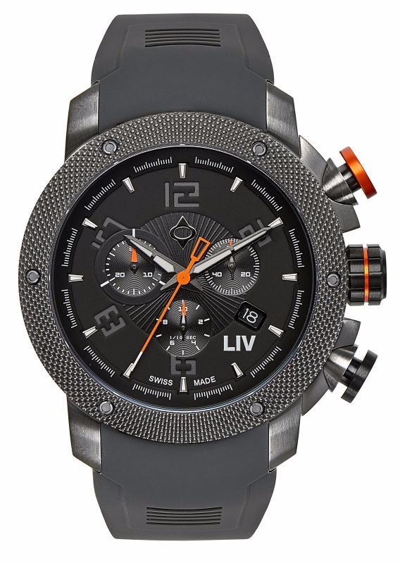 Model: 1240.45.11.SRB600 - CASE = [Material:316L Stainless Steel with Gray IP Coating], [Case Diameter:45], [Case Thickness:14.25mm], [Bezel:316L Stainless Steel with Gray IP Coating], [Case Back:Solid Screwed Down (with screws)], [Water Resistant:300 Meters - 1000 Feet], [Crystal:Scratch Resistant Sapphire],; DIAL = [Color:Black And Grey],; MOVEMENT = [Type:Chronograph Battery Powered Quartz], [Crown:Screwed Down],; BAND = [Clasp:Tang Buckle], [Type:Grey Silicone Rubber], (Usually ships in 1 to 2 business days.)
