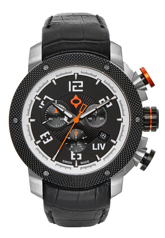 Model: 1220.45.12.A200 - CASE = [Material:316L Stainless Steel], [Case Diameter:45], [Case Thickness:14.25mm], [Bezel:316L Stainless Steel], [Case Back:Solid Screwed Down (with screws)], [Water Resistant:300 Meters - 1000 Feet], [Crystal:Scratch Resistant Sapphire], DIAL = [Color:Black], MOVEMENT = [Type:Chronograph Battery Powered Quartz], [Crown:Screwed Down], BAND = [Clasp:Tang], [Type:Black Alligator Leather], (Usually ships in 1 to 2 business days.)