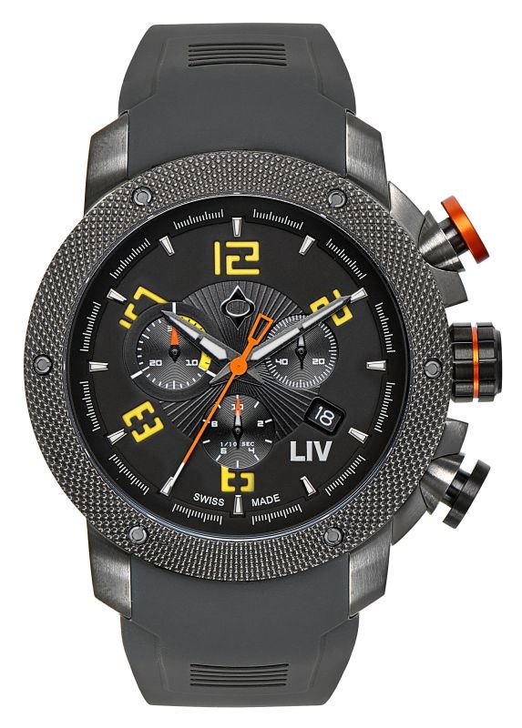 Model: 1240.45.13.SRB600 - CASE = [Material:316L Stainless Steel with Gray IP Coating], [Case Diameter:45], [Case Thickness:14.25mm], [Bezel:316L Stainless Steel with Gray IP Coating], [Case Back:Solid Screwed Down (with screws)], [Water Resistant:300 Meters - 1000 Feet], [Crystal:Scratch Resistant Sapphire], DIAL = [Color:Black And Grey], MOVEMENT = [Type:Chronograph Battery Powered Quartz], [Crown:Screwed Down], BAND = [Clasp:Tang Buckle], [Type:Grey Silicone Rubber], (Usually ships in 1 to 2 business days.)