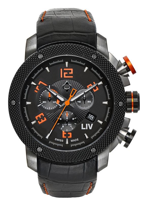 Model: 1230.45.10.A100 - CASE = [Material:Gunmetal], [Case Diameter:45], [Case Thickness:14.25mm], [Bezel:PVD Black Steel], [Case Back:Solid Screwed Down (with screws)], [Water Resistant:300 Meters - 1000 Feet], [Crystal:Scratch Resistant Sapphire], DIAL = [Color:Black], MOVEMENT = [Type:Chronograph Battery Powered Quartz], [Crown:Screwed Down], BAND = [Clasp:Pin & Buckle], [Type:Black Alligator Leather (8 in Length (20.3 cm)], (In Stock - Ready to ship.)