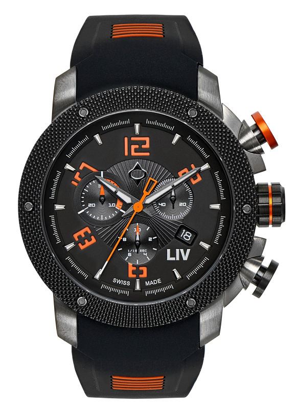 Model: 1230.45.10.SRB100 - CASE = [Material:Gunmetal], [Case Diameter:45], [Case Thickness:14.25mm], [Bezel:PVD Black Steel], [Case Back:Solid Screwed Down (with screws)], [Water Resistant:300 Meters - 1000 Feet], [Crystal:Scratch Resistant Sapphire], DIAL = [Color:Black], MOVEMENT = [Type:Chronograph Battery Powered Quartz], [Crown:Screwed Down], BAND = [Clasp:Pin & Buckle], [Type:Black Silicone Rubber (8 in Length (20.3 cm)], (In Stock - Ready to ship.)