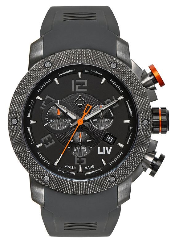 Model: 1240.45.11.SRB600 - CASE = [Material:316L Stainless Steel with Gray IP Coating], [Case Diameter:45], [Case Thickness:14.25mm], [Bezel:316L Stainless Steel with Gray IP Coating], [Case Back:Solid Screwed Down (with screws)], [Water Resistant:300 Meters - 1000 Feet], [Crystal:Scratch Resistant Sapphire], DIAL = [Color:Black And Grey], MOVEMENT = [Type:Chronograph Battery Powered Quartz], [Crown:Screwed Down], BAND = [Clasp:Tang Buckle], [Type:Grey Silicone Rubber], (Usually ships in 1 to 2 business days.)