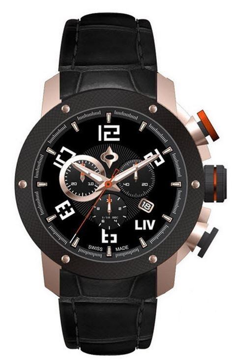 Model: 1260.45.90.A201.D100 - CASE = [Material:316L Stainless Steel with Rose Gold Tone IP Coating], [Case Diameter:45], [Case Thickness:14.25mm], [Bezel:316L Stainless Steel with Black IP Coating & Rose Gold Tone Accents], [Case Back:Solid Screwed Down (with screws)], [Water Resistant:300 Meters - 1000 Feet], [Crystal:Scratch Resistant Sapphire], DIAL = [Color:Black], MOVEMENT = [Type:Chronograph Battery Powered Quartz], [Crown:Screwed Down], BAND = [Clasp:Deployment Buckle], [Type:Black Alligator Leather], (Usually ships in 1 to 2 business days.)
