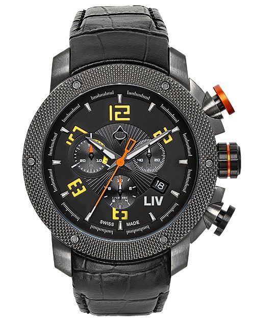 Model: 1240.45.13.A200 - CASE = [Material:316L Stainless Steel with Gray IP Coating], [Case Diameter:45], [Case Thickness:14.25mm], [Bezel:316L Stainless Steel with Gray IP Coating], [Case Back:Solid Screwed Down (with screws)], [Water Resistant:300 Meters - 1000 Feet], [Crystal:Scratch Resistant Sapphire], DIAL = [Color:Black And Grey], MOVEMENT = [Type:Chronograph Battery Powered Quartz], [Crown:Screwed Down], BAND = [Clasp:Tang Buckle], [Type:Black Alligator Leather], (Usually ships in 1 to 2 business days.)