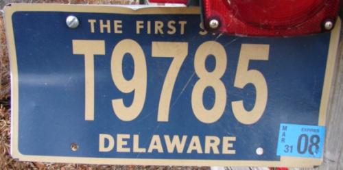 DELAWARE FOUR DIGIT TRAILER TAG #T9785. Buyer responsible for transfer paperwork and fees.