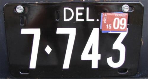DELAWARE FOUR DIGIT VEHICLE TAG #7743. Buyer responsible for transfer paperwork and fees.