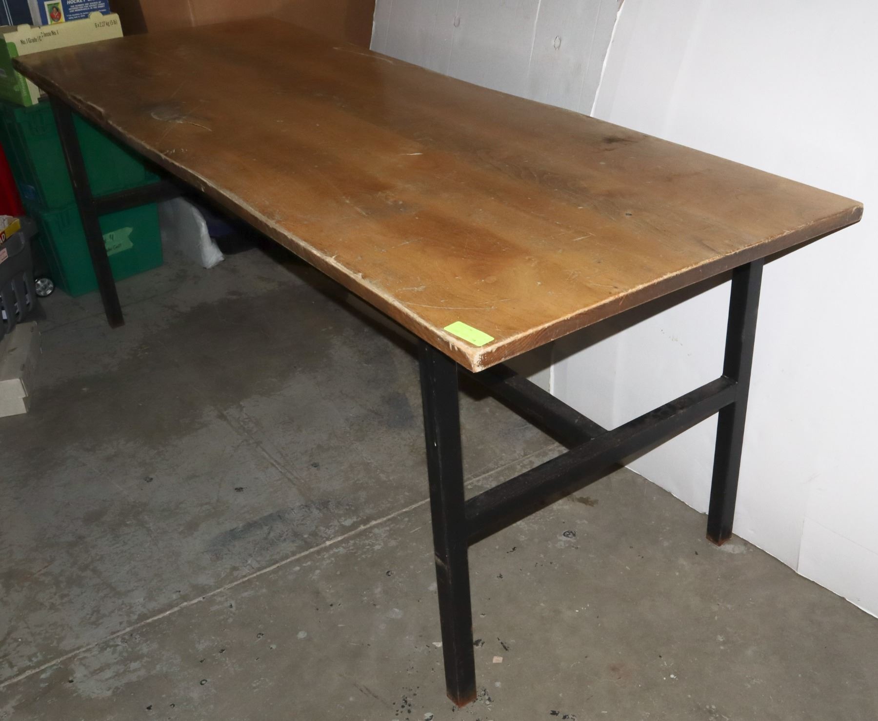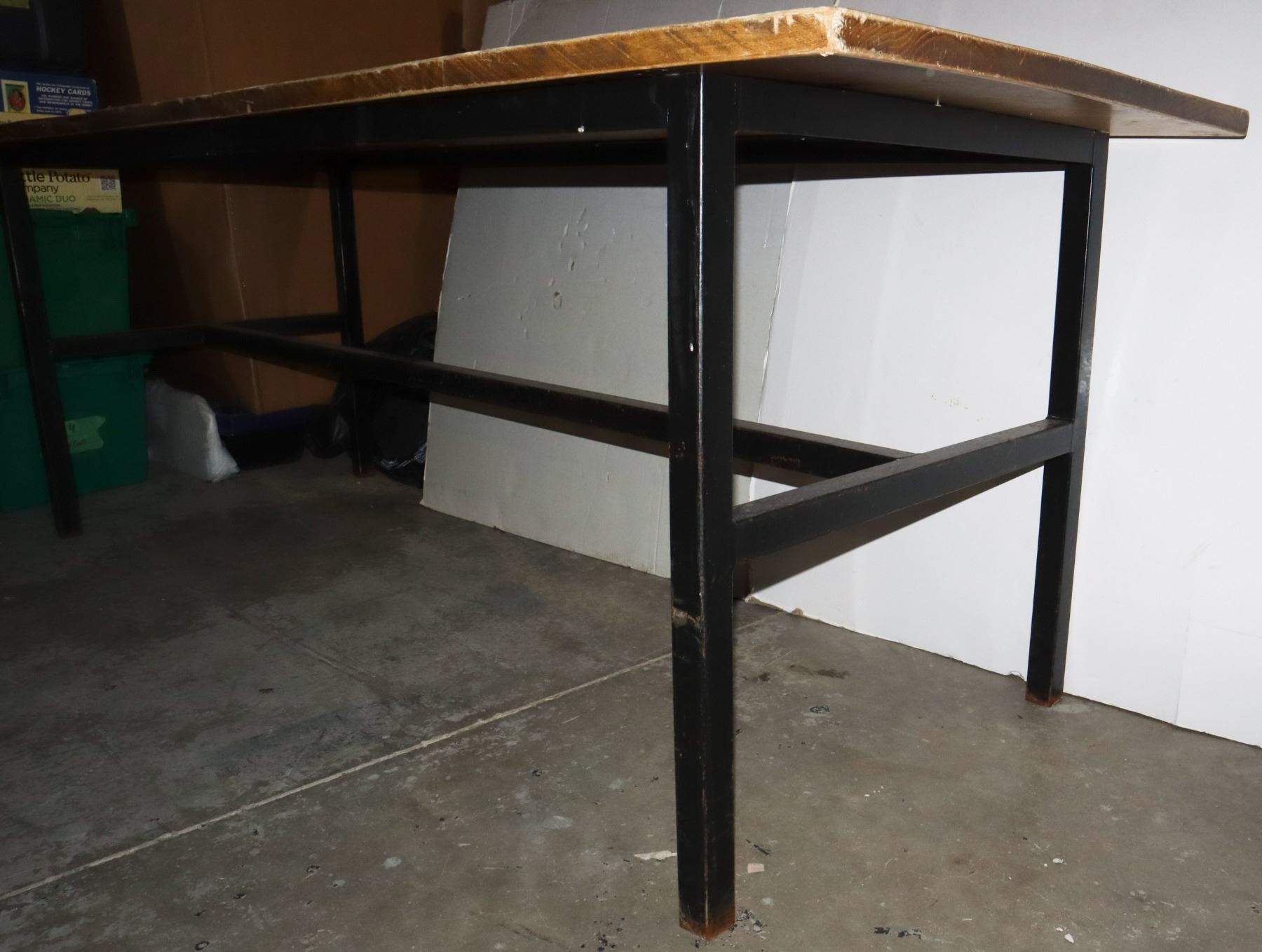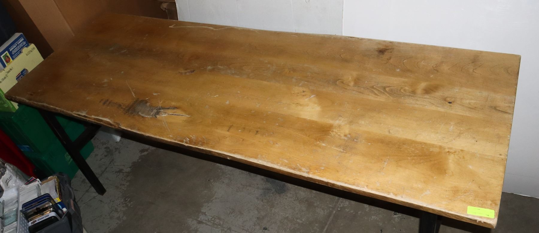 LIVE EDGE COMMERCIAL WOOD TOP, METAL BASE TABLE.
