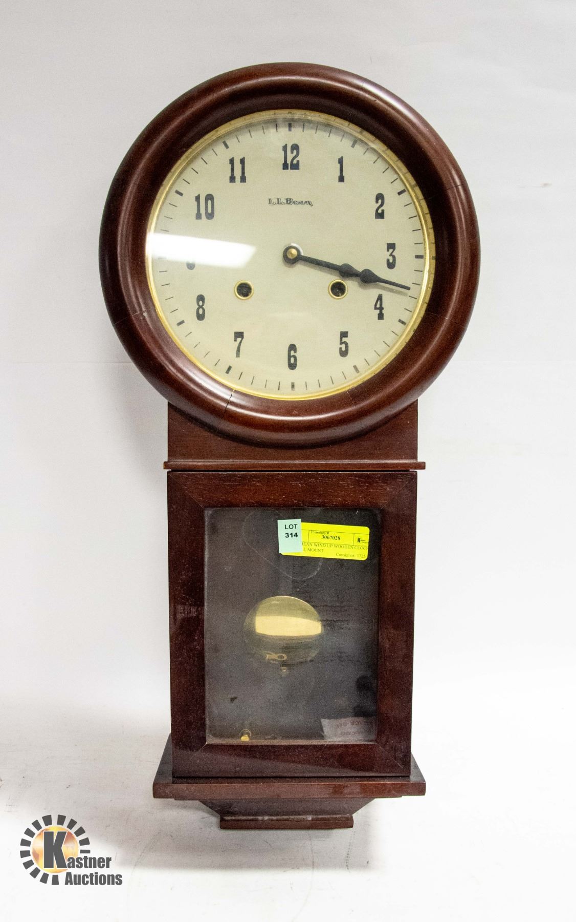 LL BEAN WIND UP WOODEN CLOCK WALL MOUNT