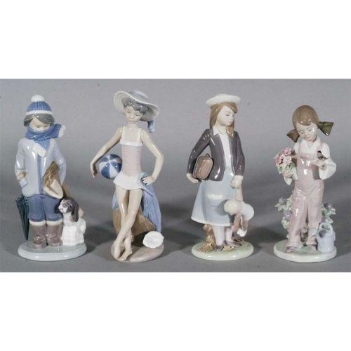 1 LLADRO FIGURES (4) four seasons #5217-5220, 8" high, CONDITION REPORT: excellent. PACKING AND SHIPPING (excluding insurance) by Fairfield Auction to points within the Continental U.S.A. and Canada (all other international must be handled by 3rd party shipper) $40.