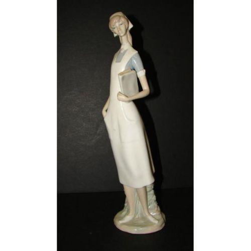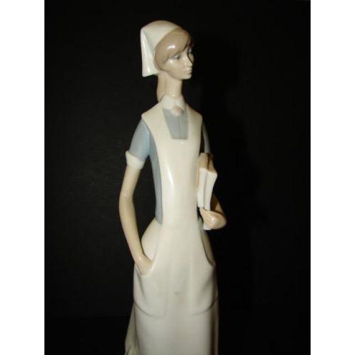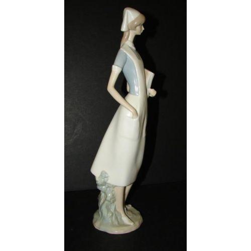 LLADRO FIGURINE. Depicts a female nurse holding books in left arm. Marked on bottom. 14” H