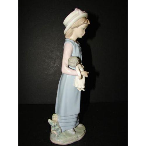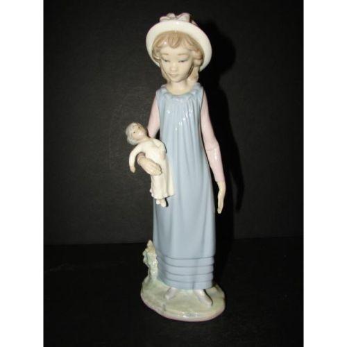 LLADRO FIGURINE. Depicts a standing girl holding a doll in her right arm. Marked on bottom. 11.25” H