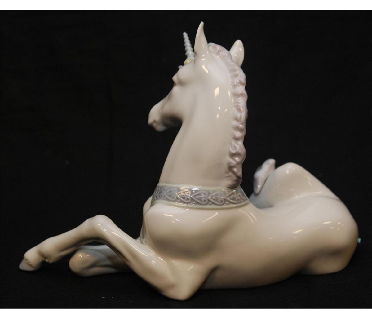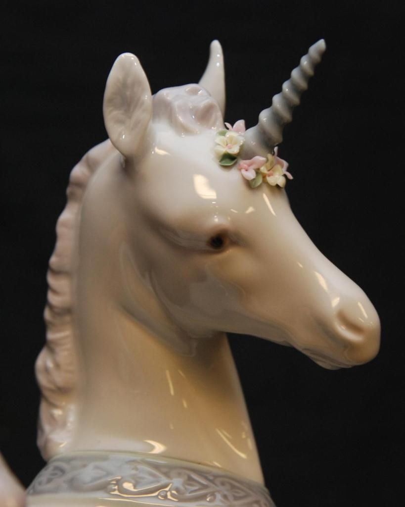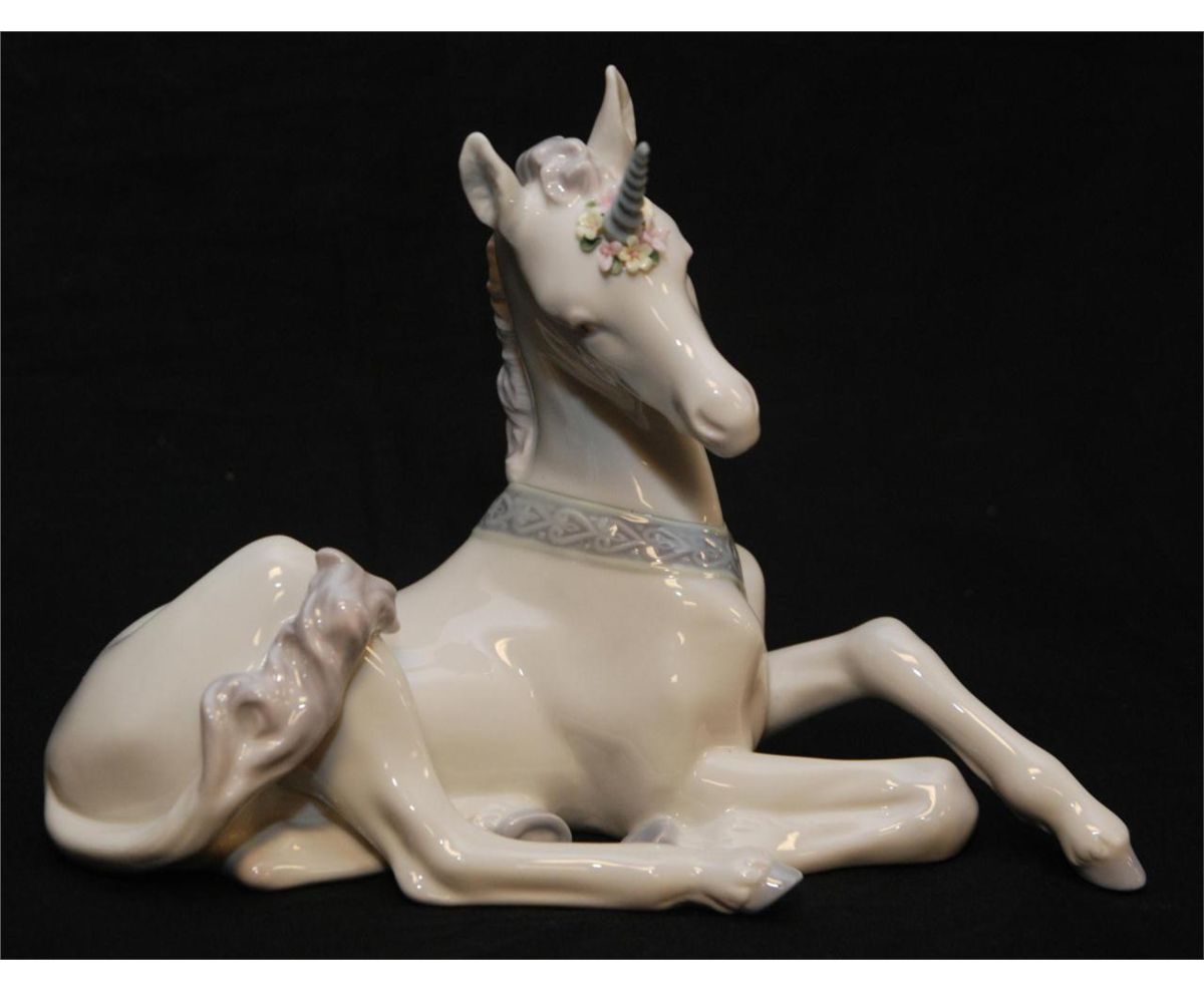 Lladro Spanish glazed porcelain unicorn figure titled "Little Unicorn" or "Pequeno Unicornio". Measures 6 1/2" height (16.5cm). Total weight of 516 grams.