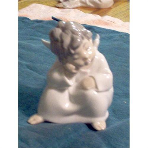 this is an early LLADRO thinking angel. Marked LLADRO on the bottom but no numbers. This angel lived in a smoke free, kid free home.